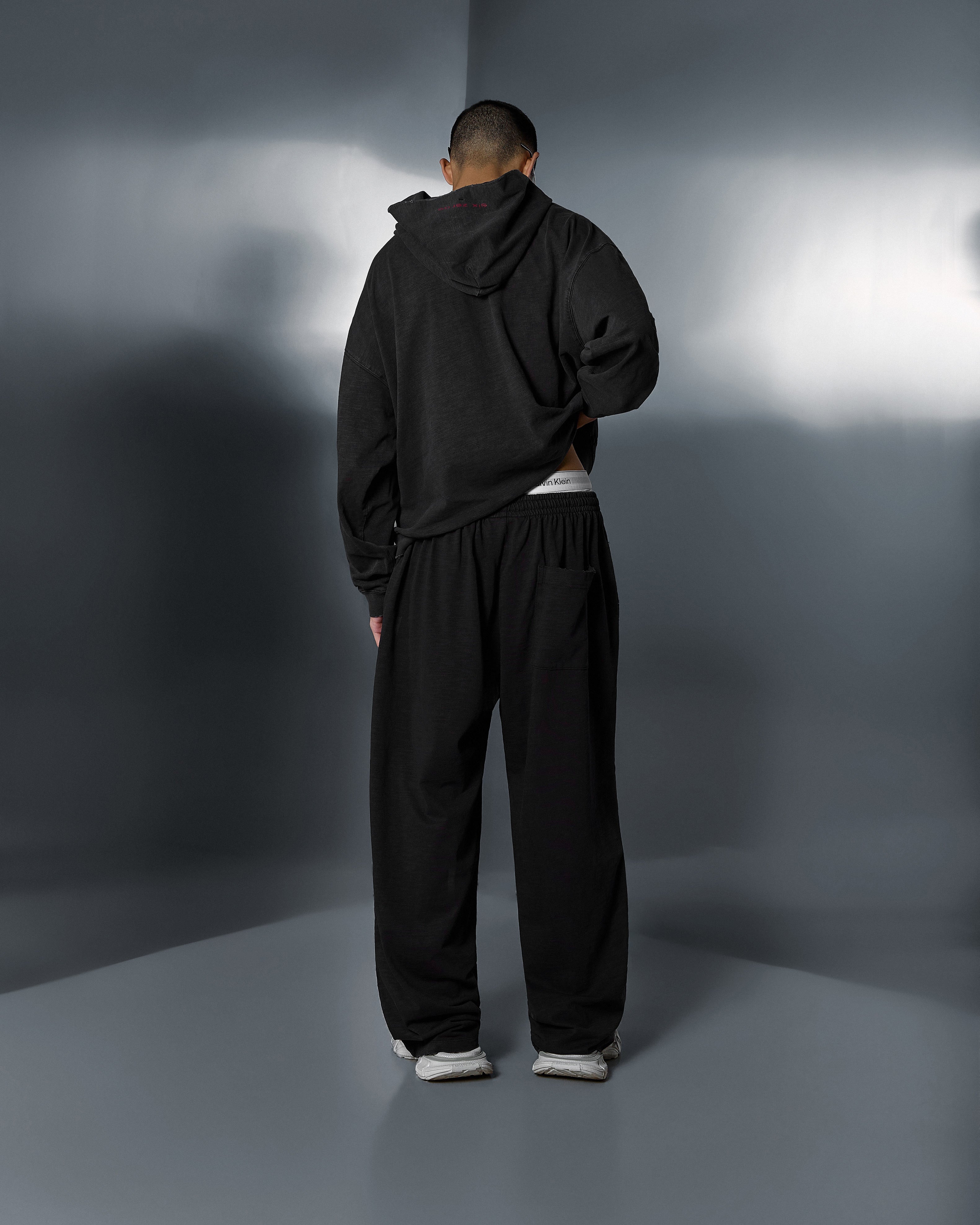 These trousers in a deep black shade offer a soft take on the silhouette, with an emphasis on comfort and the fabric’s natural drape.